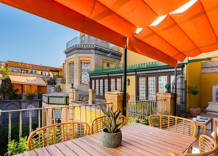 El Apartamento Espectacular ático con terraza - Centro Catedral Sevilla, situado a 2 km de la Torre Sevilla, se encuentra a a unos 25 minutos a pie de un importante lugar para familias como la Isla Mágica.